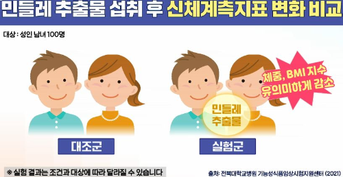 실제로 성인 남녀 100명을 대상으로 한 실험에서 민들레 추출물을 섭취한 그룹에서는 체중과 *BMI 지수가 유의미하게 감소함이 확인되었습니다.