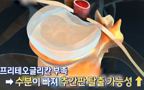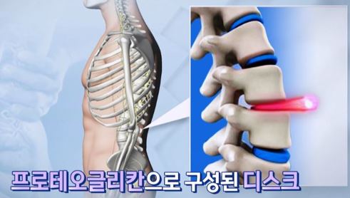 프로테오글리칸은 척추체 사이에서 디스크의 쿠션 역할을 하며, 디스크를 정상 상태로 유지하기 위해 수분을 유지시키는 역할을 합니다. 디스크의 80%는 수분으로 이루어져 있기 때문에 프로테오글리칸부족하면 수분이 빠져나가고 압력을 버틸 수 없게 되어 디스크의 탈출 가능성이 높아집니다. 따라서 나이가 들수록 외부로부터 프로테오글리칸의 보충이 필요합니다. 허리 불편함을 느끼는 성인들을 대상으로 한 연구에서 프로테오글리칸 섭취 후 허리통증개선되었다는 결과가 있습니다.