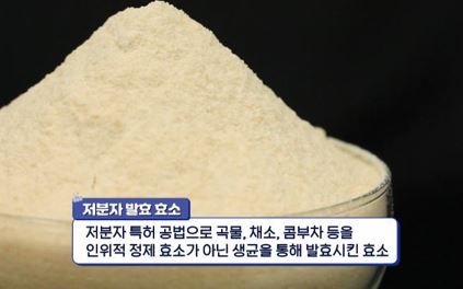 저분자 발효 효소는 곡물 20여 종, 과일과 채소 28종, 콤부차 등 50여 가지의 원료를 생균을 통해 저분자 특허 공법으로 발효시킨 것으로, 탄수화물, 단백질, 지방 분해에 일반 효소보다 더 도움을 줄 수 있습니다.