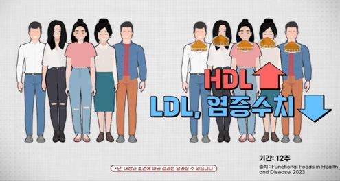 성인 100명을 대상으로 다이글로메라를 섭취시킨 연구 결과에 따르면, 좋은 콜레스테롤인 HDL 수치는 증가하고, 나쁜 콜레스테롤인 LDL과 염증 수치는 감소한 것으로 보고되었습니다.