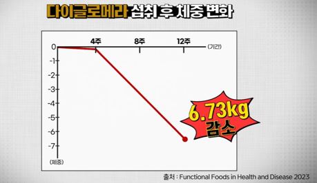 다이글로메라는 체지방 감소와 관련된 다양한 연구 결과가 있습니다. 비만을 유발한 쥐에게 다이글로메라를 공급한 결과, 에너지 대사를 활발하게 만들어주는 AMPK가 최대 2.6배 증가했다는 보고가 있습니다. 또한, 성인을 대상으로 한 연구에서는 12주간 섭취 후 체중이 평균 6.73kg 감소하고, 허리 둘레와 체지방량 등 비만 지표가 개선되었습니다.