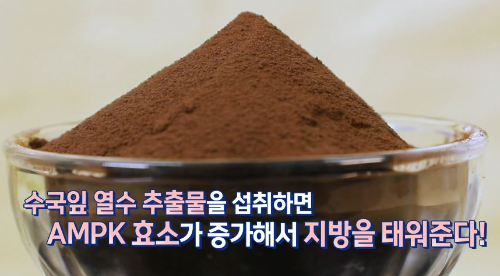 AMPK 효소란, 체내에서 에너지 대사를 높여서 지방 사이즈를 줄여주는 효소로써, 지방산의 합성과 분해를 매개하여 '지방 소각장' 역할을 하기 때문에 꼭 필요합니다. 나이가 들수록 몸속에 있는 AMPK 효소가 줄어들게 되어 젊을 때보다 뱃살을 빼기 어려워지게 되는데, 이때 수국잎 열수 추출물을 섭취하면 AMPK 효소가 증가해 지방 분해 능력이 올라갑니다.