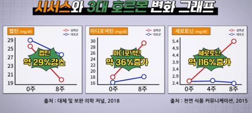 시서스 섭취에 대한 연구에서는 과체중 성인 67명을 대상으로 한 실험에서, 렙틴이라는 식욕 억제 호르몬이 약 29% 감소한 것으로 나타났고, 지방 세포 크기를 줄이는 아디포넥틴은 약 36% 증가하였으며, 식욕을 자극하는 세로토닌은 약 116% 증가한 것으로 보고되었습니다.